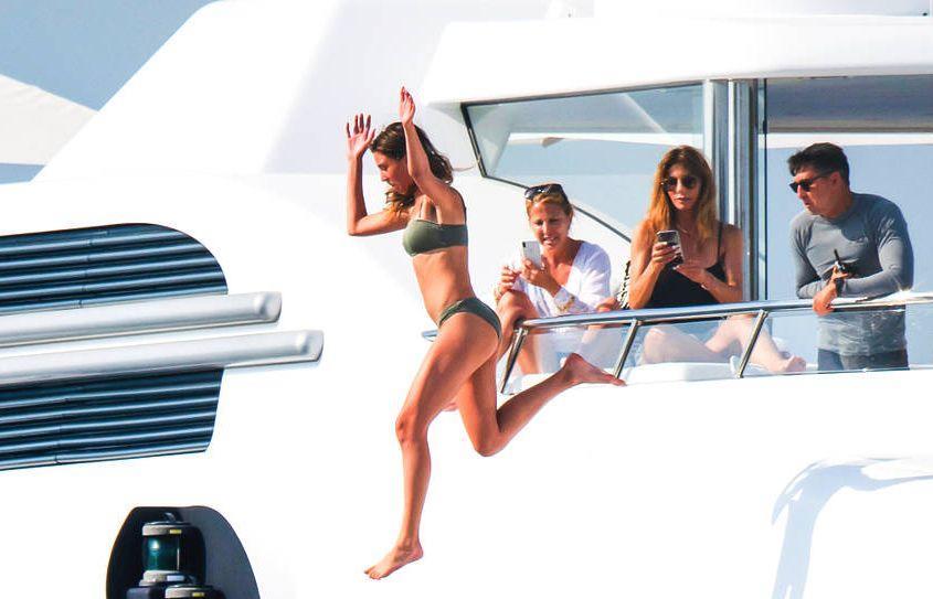 从照片可以看出,史泰龙一家心情特别愉悦,他妻子和女儿更是身着比基尼,狂秀了一把好身材。史泰龙的女儿还玩起了跳水,惹火的身段溅起四散的水花。