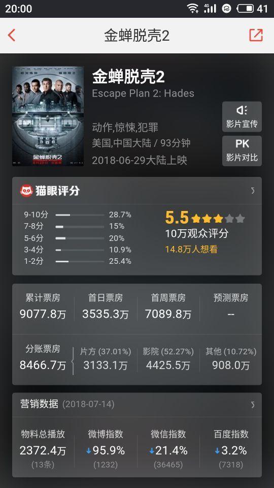 《金蝉脱壳2》票房统计