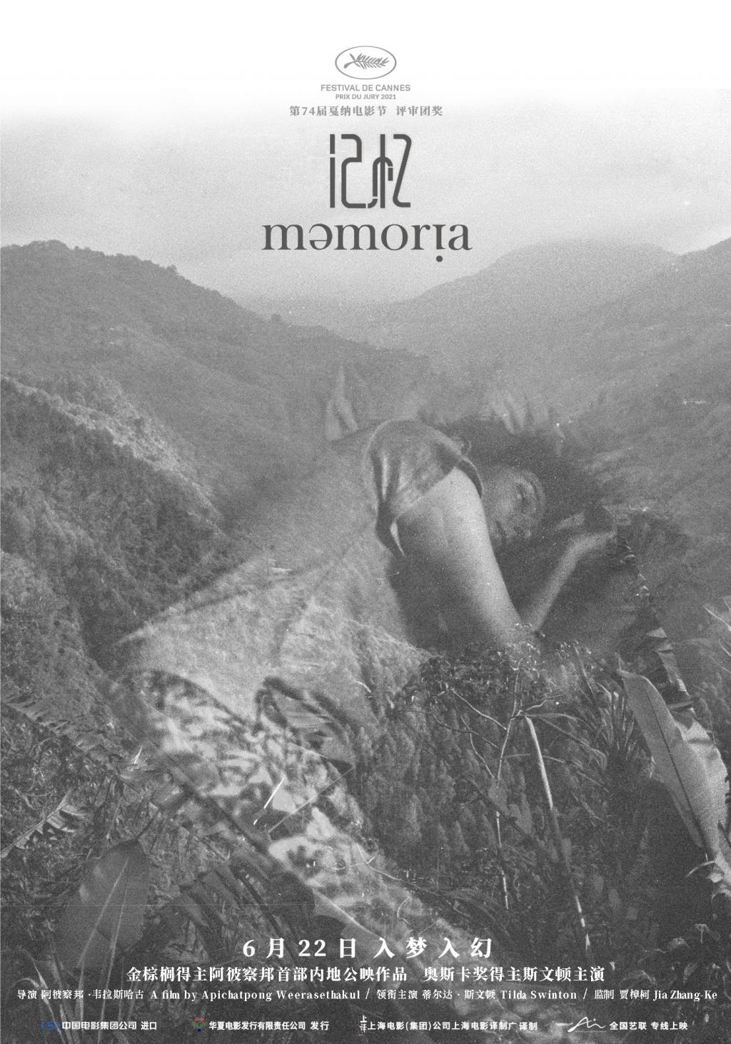 泰国首位金棕榈奖得主阿彼察邦 · 韦拉斯哈古执导,奥斯卡得主蒂尔达 · 斯文顿主演的电影《记忆》,此前官宣定档将于 6 月 22 日在全国艺术电影放映联盟专线放映,并一同曝光了 " 梦幻 " 版海报与 " 回响 " 版预告视频,整体低饱和度的色调给影片增添了一丝神秘质感,由导演亲自录制的 VCR 预告,更是表达了导演关于作品即将与中国观众见面的喜悦之情,据悉本部影片是导演在内地首部上映电影,期待早日在大银幕与观众相见。