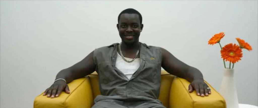 比如眼前的这个黑人小哥,他被注射了 " 笑 ",那么无论这个时候别人跟他说什么悲伤的事情,他的反应永远都是一个,笑。