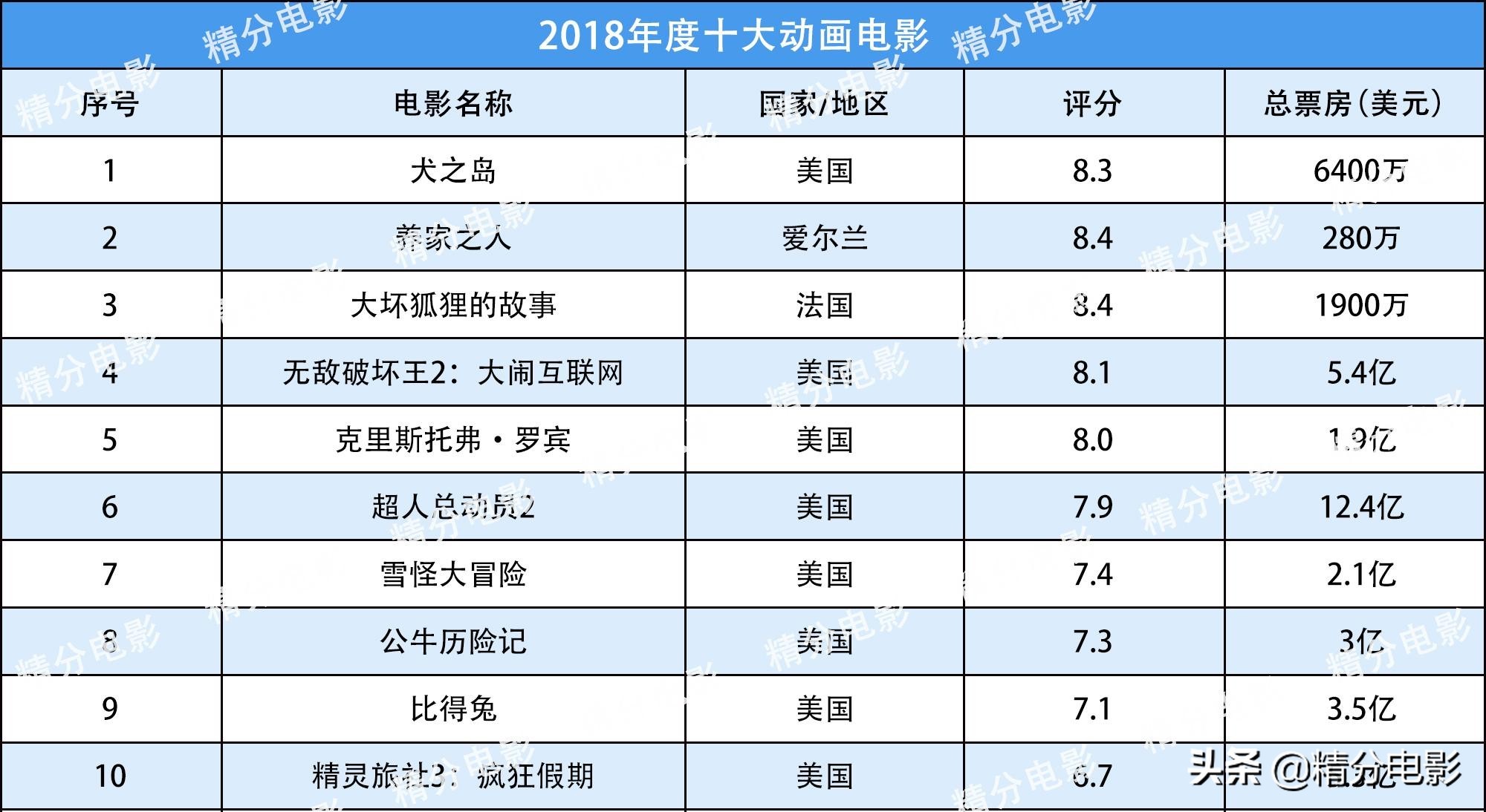 2018年,国产动画无一上榜,美国动画口碑票房双丰收。