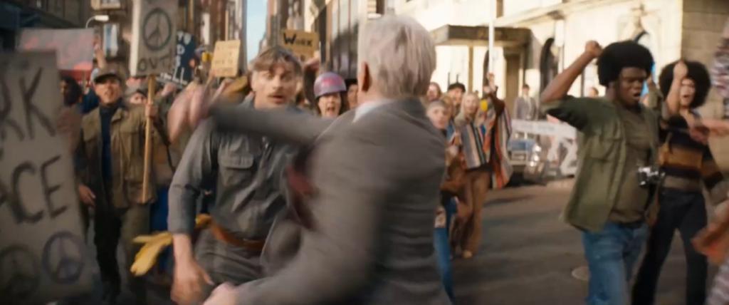 那个跟他一起的年轻女主角却一棒子打晕了他,把他带回了 1969 年。