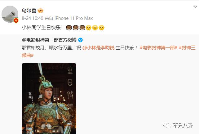 乌尔善对从封神训练营出来的演员,亦或是合作过的演员,都十分珍视,在他微博,但凡有人过生日,他都会特别发一条文案,为对方庆祝。