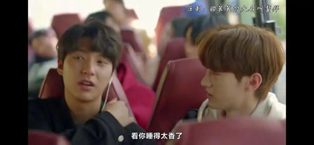 冲浪社的第一次活动,大巴上宰元跟智贤坐在一起。