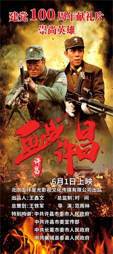 许昌建党百年献礼之作,由北京五环星光影视文化传媒公司历时近5年拍摄制作、再现抗战英雄人物的大型抗战电影《血战许昌》,已于6月1日在全国公映,许昌奥斯卡电影院线均可观看。