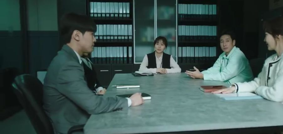 看到这我不由的想到了《财阀》中导俊自己开始赚钱时,也是站在这样写字楼中开启自己的复仇计划,难道韩国导演都好这一口?