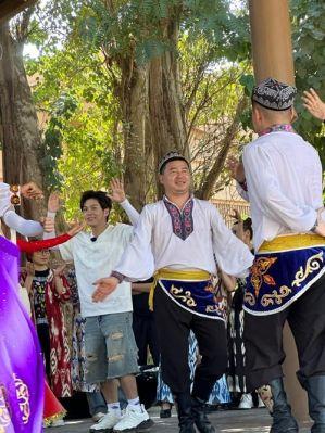 与此同时,当地人举办的一场聚会更是为这个旅程增添了几分色彩,武艺等人被邀请参与那孜库姆的表演。在富有地域特色的乐器演奏和滑稽幽默的表演中,武艺与武星无奈地像被长辈催促表演才艺似的互相推让,令人忍俊不禁。流畅的舞步和热闹的歌声,共同编织出一幅温馨的画面,爱融化了炎热的空气,滋润了每个人的心灵。