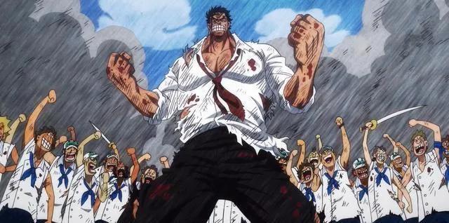 加上前期莫名其妙被蒙卡砍伤和顶上说要杀死赤犬后被大将粉嘲讽,卡普的实力在一度被认为普通中将。