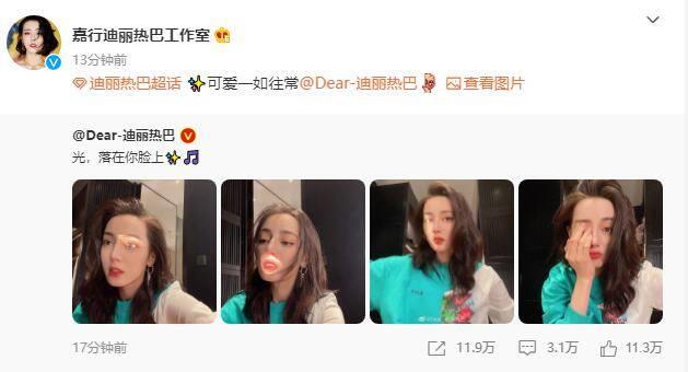 随后,迪丽热巴工作室转发了该条动态,并附上一张迪丽热巴的新自拍。