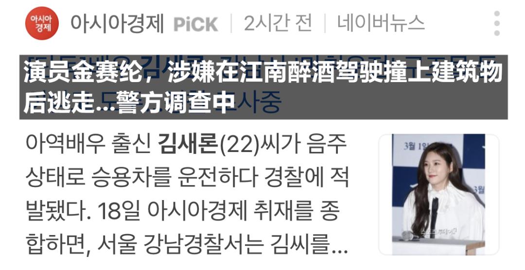 韩媒曝金赛纶涉嫌酒驾事故后逃逸,警方回应现场已喝烂醉