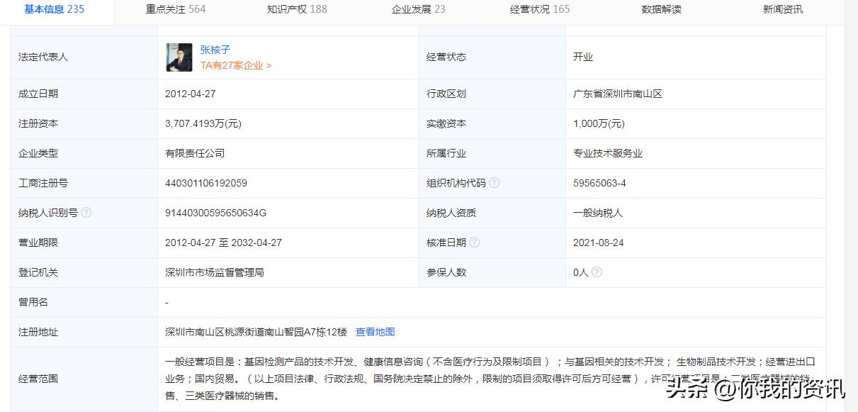这里有个重点,就是深圳市核子基因科技有限公司,100%持股!