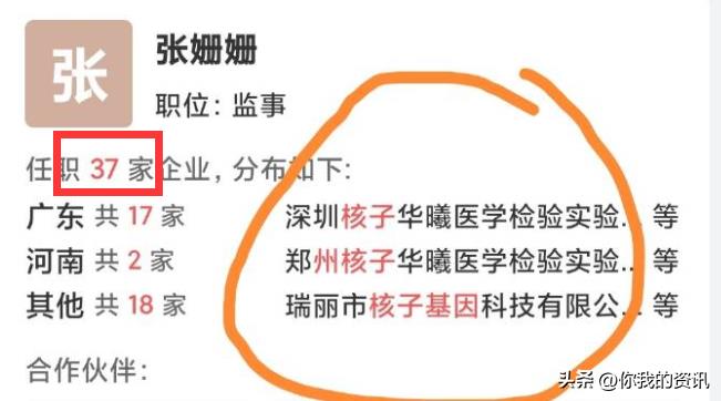 而张姗姗名下有37家公司,你没听错,37家,而且多为核酸机构。