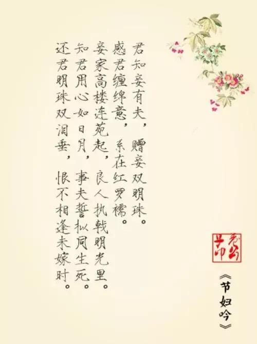 这样的说法倒也无可厚非 ,但是,即便是要表达爱情 ,这首诗也只能用来表达对自己爱情的忠贞不渝 ,而不是对他人妻的爱而不得 。毕竟 ,“恨不相逢未嫁时 ”只是用于拒绝的一句礼貌用语罢了 ,整首诗真正的精髓在“知君用心如日月,事夫誓拟同生死。”