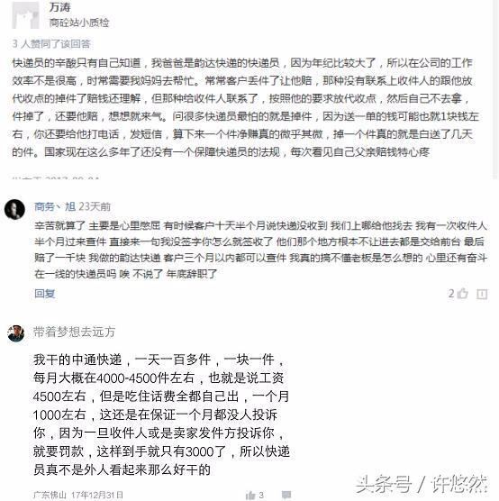 当然,大家发的都是牢骚,也有很多快递员虽然辛苦点,但工作越来越熟,每月的收入一路看涨,还是比较满意这份工作的。
