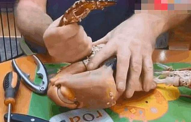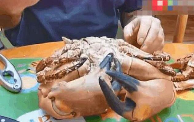 从外表来看,这样的螃蟹并不是很特别,只能说,这种螃蟹在中国的海鲜市场还是非常少见的,是外国进口的,竟然是这样的话,价格贵一点也是可以理解的,吃这样的面包蟹,还是需要工具的,如果没有工具的话,只能是干瞪眼了吗?不过敲开之后我愣住了,刚一敲开,就有蟹汁流出来了,而且里面全是蟹黄,让人感觉很有食欲。