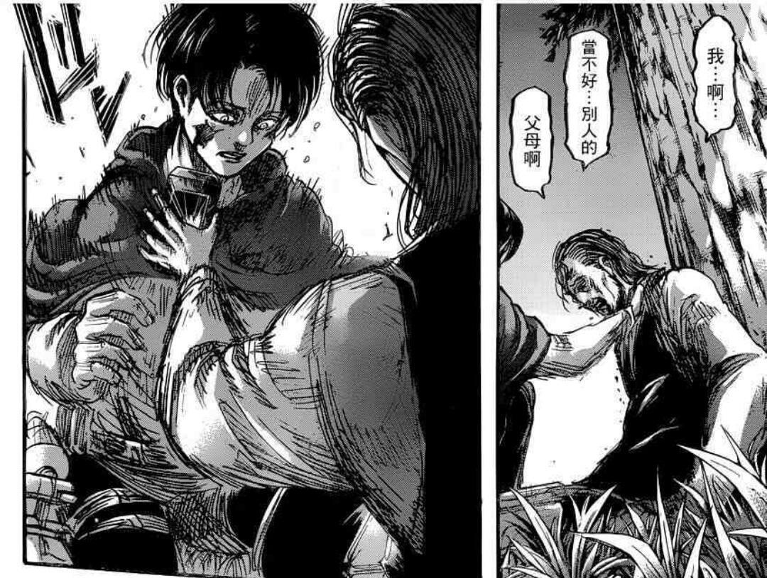 讲道理兵长和凯尼之间也是充满了父爱的味道,特别是最后那张图,看得我有点泪目啊。最后那支巨人药剂,也是在兵长斩猿巨人的起了大作用。