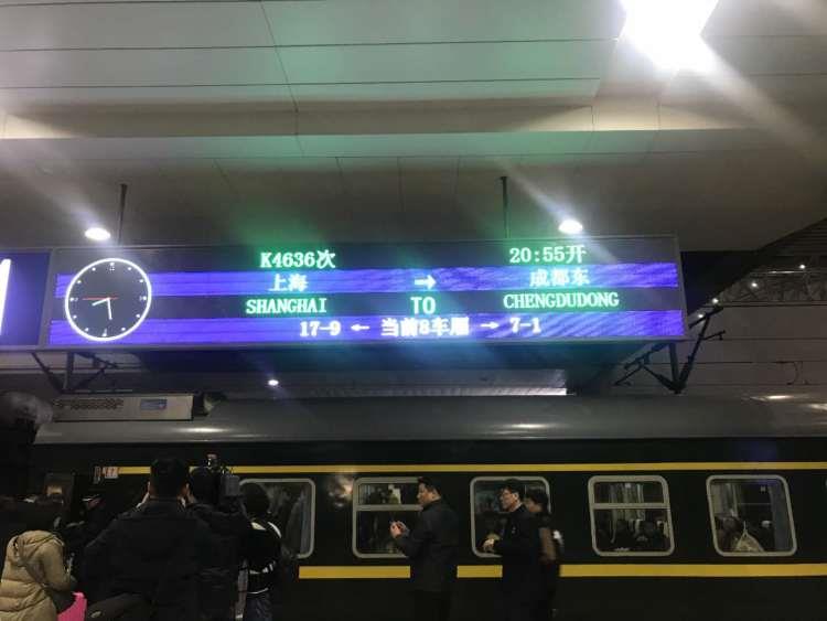 记者从铁路工作人员处了解到,1月17日开行的K4636次列车,沿途停靠苏州、无锡、南京、蚌埠、徐州、开封、郑州、洛阳、达州等车站,最终到达成都东站,全程31小时55分。