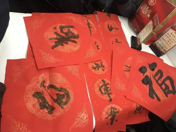 此时,由乘务人员组成的书法爱好团队正在车厢内泼墨挥毫,为旅客们创作出一幅幅带有铁路色彩的春联和福字,提前送去新年的祝福。