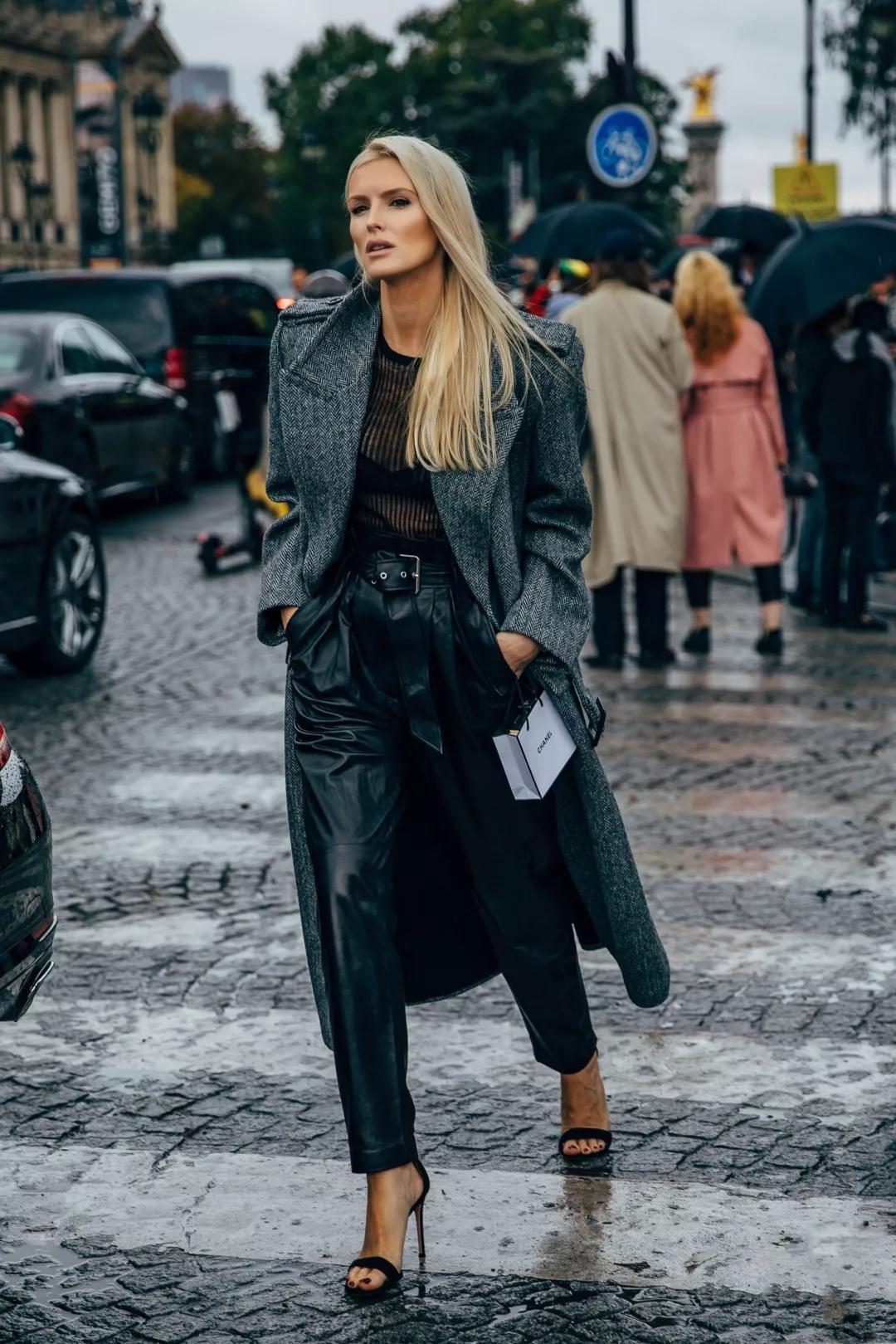 直筒皮裤从版型上来说,直筒型的裤子从视觉上就会消弱腿部的绷紧感,会把腿部较粗的MM们的腿变得纤细。如果直筒皮裤再加上高腰设计,会拉长整个腿部比例,两者一结合,绝对是“腿精”的首选裤装。