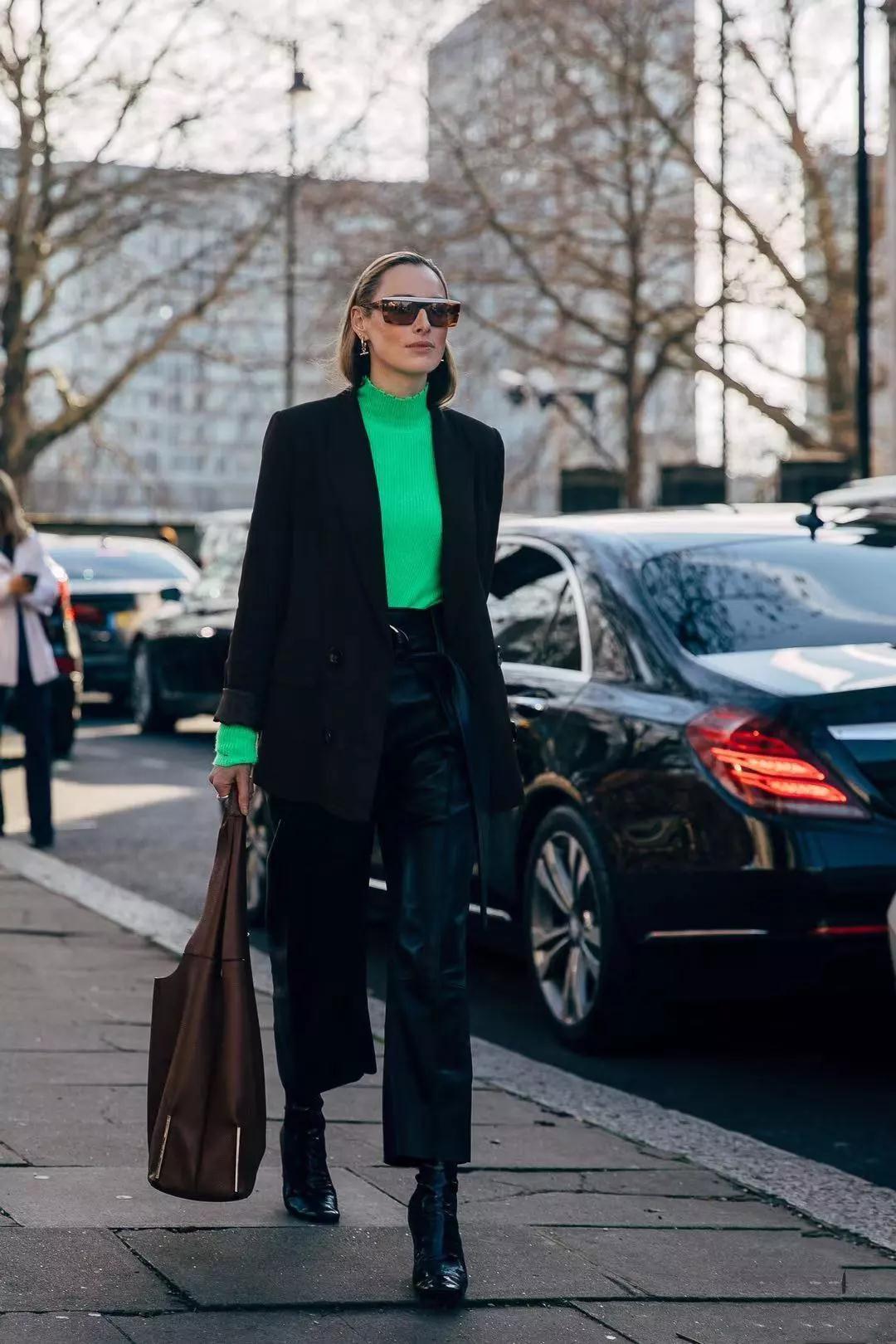 高级的搭配一定是“至简为上”,而同色系搭配是“简约搭配”的重要表现。纯黑色的阔腿皮裤立挺硬朗,整个人充满一种“干劲十足”的感觉。可以再搭配一款黑色的西装外套,利落大方,两个搭配一起完全有一种“女强人”的气场。