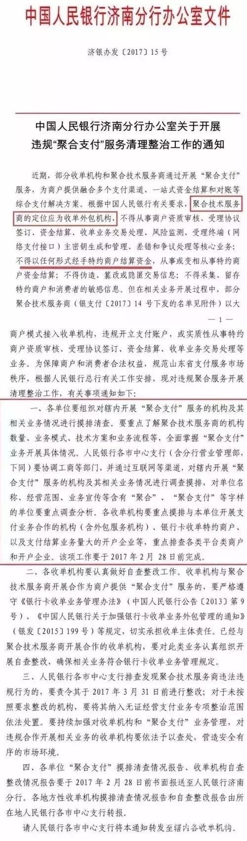 记者关注到,近日有消息传出,央行已着手对业内比较火的聚合支付平台进行摸底,各地分行根据央行安排下发了《关于开展违规“聚合支付”服务清理整治工作的通知》。《国际金融报》记者就此消息向央行求证,但截至发稿,未收到回复。