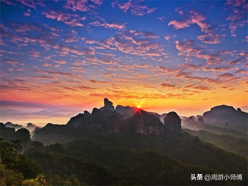 丹霞山是广东面积最大、以丹霞地貌景观为主的风景区, 与鼎湖山、罗浮山、西樵山合称为广东四大名山