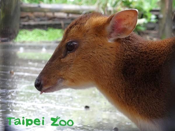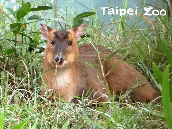 台湾山羌两颊鼓起、嘴巴快速的咀嚼,代表它们正在「反刍」。(图/台北市立动物园提供,下同)