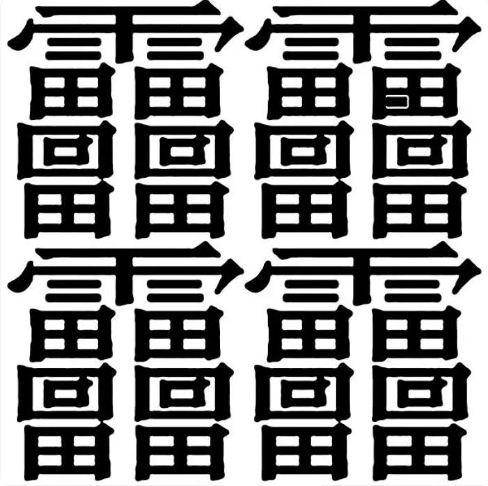 Top3 念hou·you,也是“雷”的古字,由16个田字和8个回字组成,共128画。