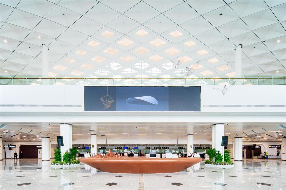 出发大厅、值机柜台、商业区……三峡机场T2航站楼揭开面纱