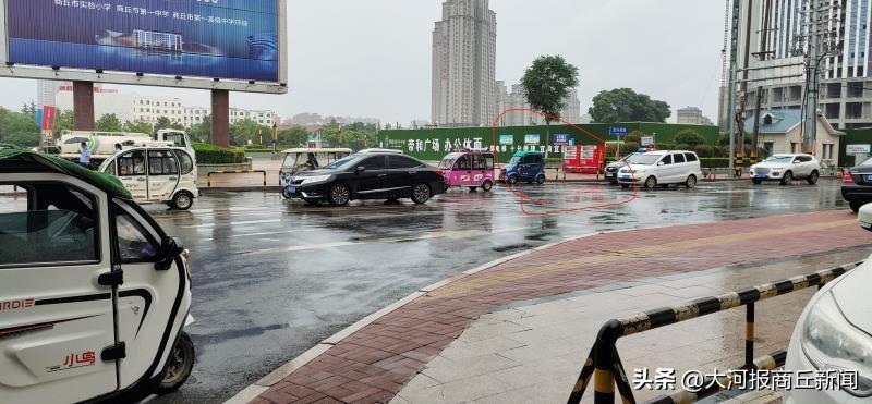 当日下午4时许,商丘的天气正在下着小雨,记者来到了商丘市神火大道和宜兴路附近事发现场。记者在现场看到,商都广场东北角的宜兴西路上,已经有民警在现场调查拍照,一辆停着的蓝色电动四轮车前后的血迹混着雨水依然清晰可见。