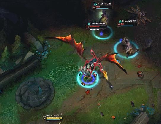 R技能有会立刻给予潘森被动能力,因此R技能落地之后可以根据局势使用不同的连招。RQ会有高伤害,RW附带眩晕和连续3次攻击,RE则是偏防御2.5秒的方向伤害免疫。新潘森落地的威慑力要比老版本更强,尤其是对付那些位移能力比较差的英雄很强势。