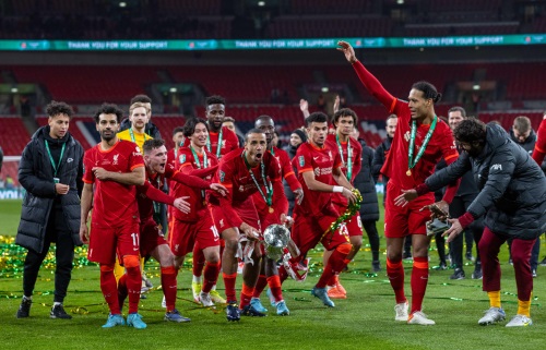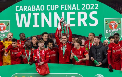 当日,在2021-2022赛季英格兰联赛杯决赛中,利物浦队在120分钟内与切尔西队以0比0战平,最终通过点球大战,利物浦队以11比10战胜切尔西队,夺得冠军。