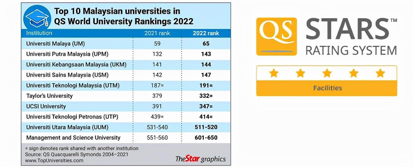 也是马来西亚排名最高的本地大学。此外,马大也被QS评估为“5星大学”(5-Star University)哦!