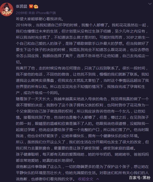 其他人的瓜暂且不看,我们来说说华晨宇与张碧晨。华晨宇的微博简单明了,承认有一个孩子,也没说是谁的。如果不是张碧晨的那段长文告白,大众还被蒙在鼓里。