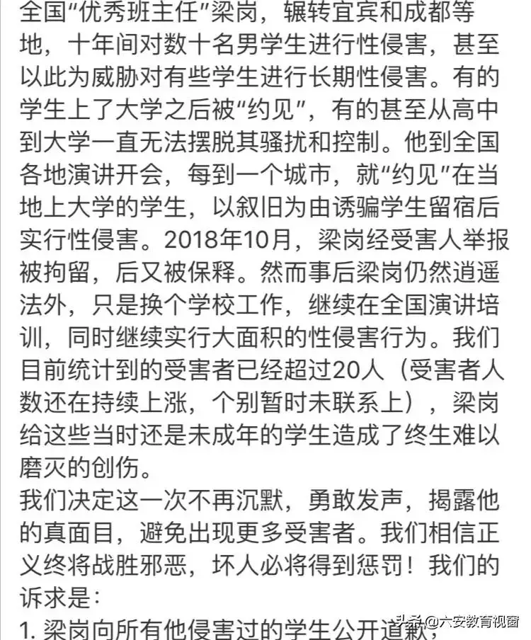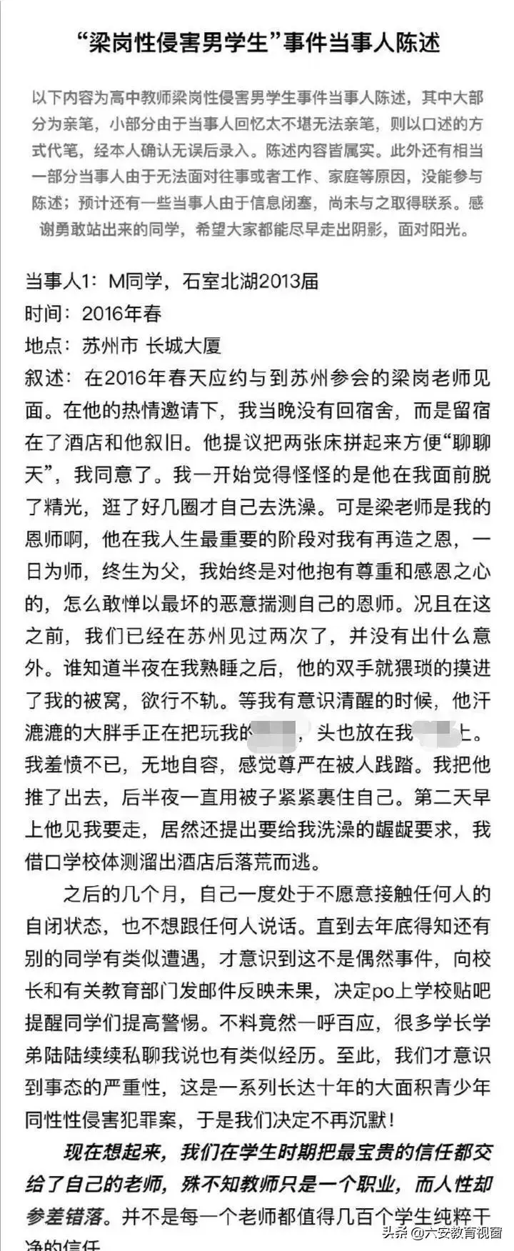 涉嫌性侵数名男学生,全国知名班主任梁岗被揭发!官方已展开调查