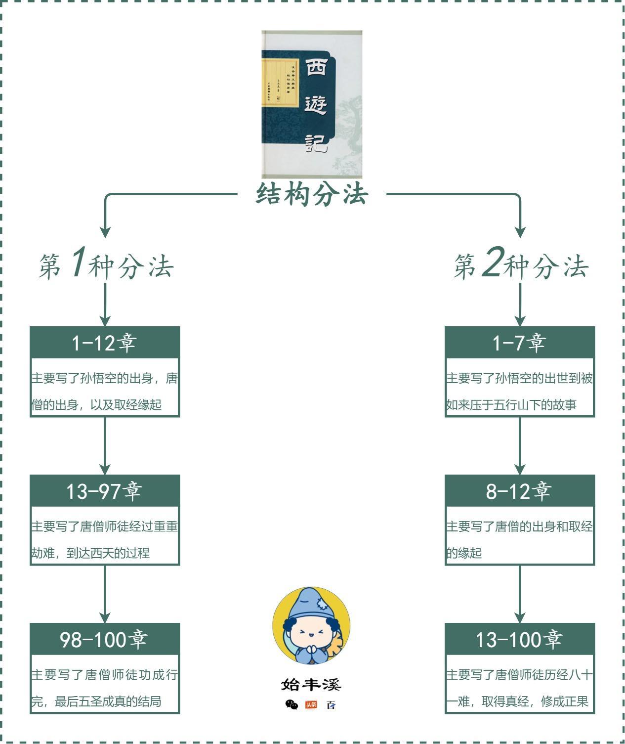 人们一般将百回本的《西游记》分为三大部分,但又有两种不同的分法。理清了它的结构对分析其主旨有很大的帮助。