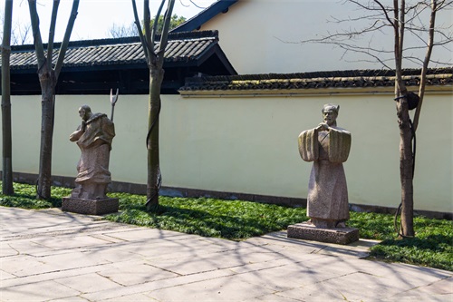 杭州西溪水浒文化展示馆在西溪湿地内,展示馆旁有水浒传作者施耐庵的雕像。展示馆内有练功厅,并模仿忠义堂在大厅摆了一些交椅。