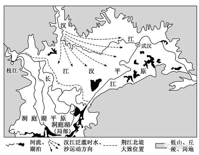 江汉平原内湖泊星罗,水网交织,垸堤纵横。地表组成物质以近代河流冲积物和湖泊淤积物为主,属细砂、粉砂及粘土。地貌上可分为两部分: