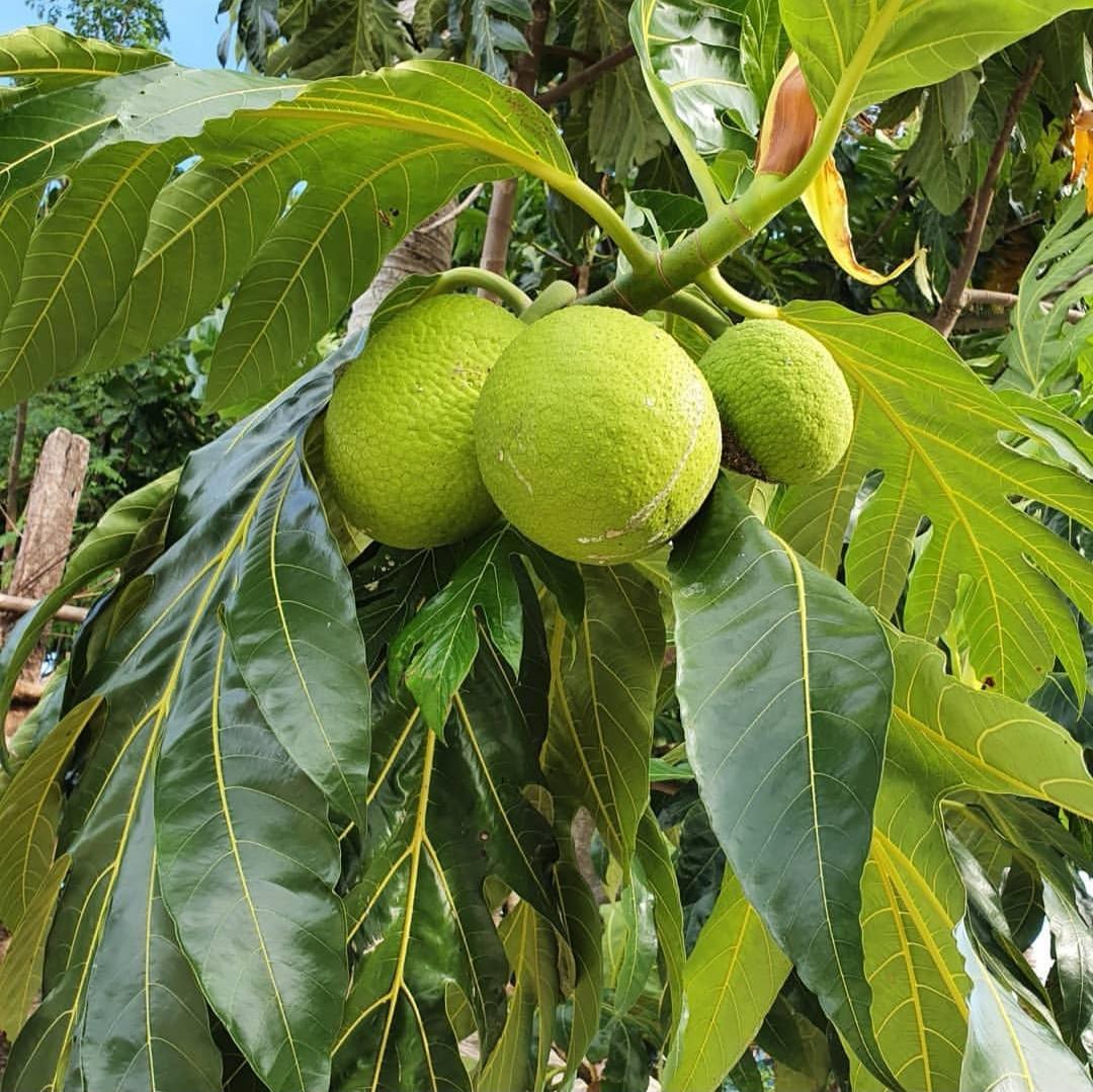 小时候“好像”在一辑纪录片里,看到过一种叫“面包果树”的植物。当地人摘下果实后用火烘烤,味道与面包十分相似,故称为面包果。