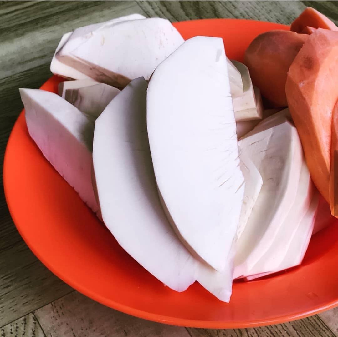 把它做成熟食的话连皮是可以连皮一起煮的,无论是用哪种方法烹调,熟了之后口感都像极了土豆。把它切成薄片或长条放入油锅中炸一下,再撒上调味粉,脆脆的,很有炸薯片(条)的既视感。