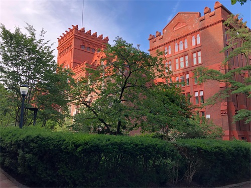 校园完全是开放式的,没有宏伟威严的校门和严格的安保登记检查,允许人们自由进出,校园内部绿树成荫十分整齐干净。