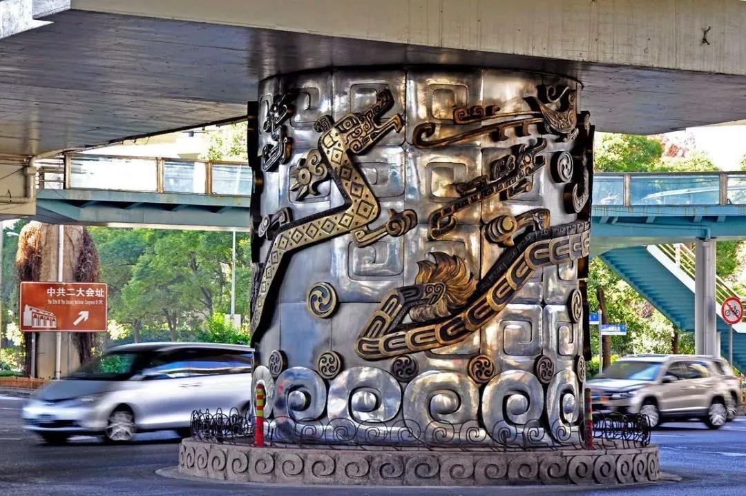 去过上海市延安路高架桥的朋友们都知道,那里有一根与众不同的柱子。这根柱子周身装饰有九条殷商时期特色的金龙,当地人称为九龙柱。