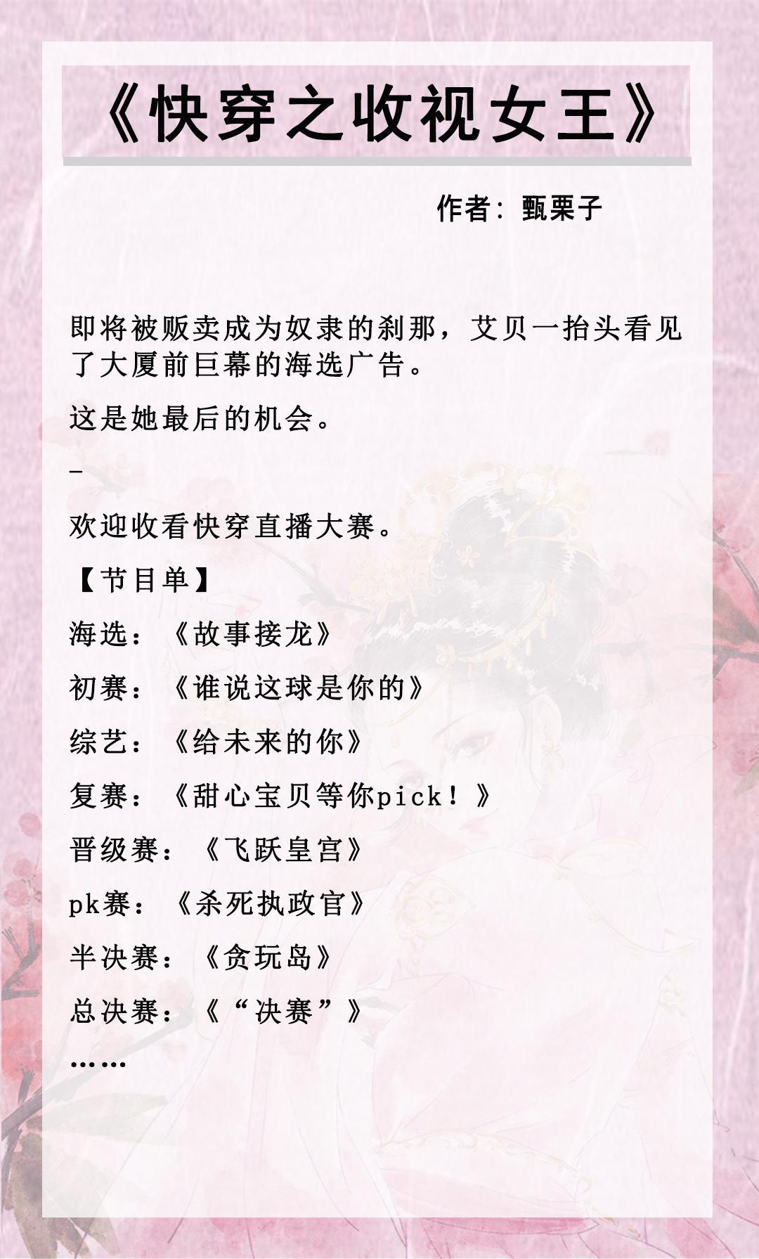 短评:非典型快穿,直播,无CP。女主来自污染严重的垃圾星,在那个资源稀缺、科技落后、犯罪率高的星球,女主为了生存不得不让自己强大起来,变得冷静理智,武力值爆表。开篇是女主被人偷渡到一个科技发达、秩序俨然的星球,差点被贩卖为奴隶。