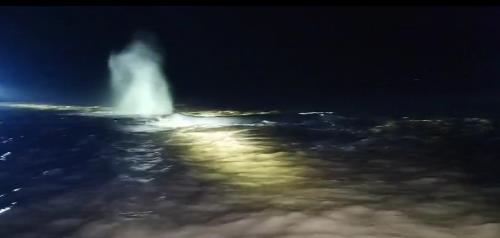 17时,预计涨潮时间将至,滩涂上所有人员撤离,回到岸上。撤离时抹香鲸状态尚好,能够摆动尾巴。渔政救援船开始待命,人们热切注视着随着天色渐晚而越来越暗的滩涂,期盼着海水快一些淹没它。