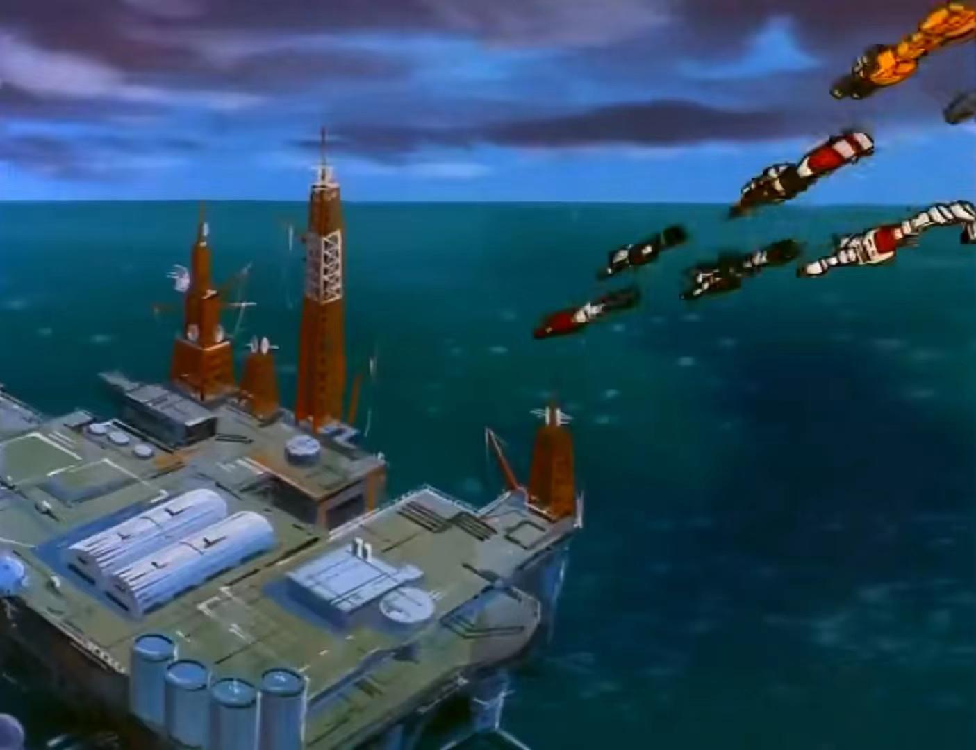当霸天虎在海上油田胡作非为之时,擎天柱率领汽车人从天而降,于是双方在地球上的第一次交火打响。也许是为了照顾前三集中战场的快速切换,编剧给汽车人也安上了飞翔的翅膀。只是,汽车人的飞行本领突然就消失了,除了个别角色(天火、机器恐龙等)具备飞行能力,其余角色都要借助飞行背包等道具才能实现飞行。霸天虎的制空权优势才真正确立起来了。
