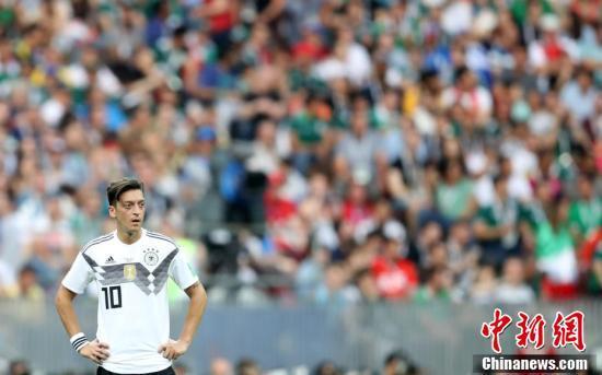 下半场,德国队虽多次形成围攻之势,但始终未能攻破墨西哥队的大门,本届世界杯首战爆冷,以0-1负于墨西哥。图为德国队厄齐尔。