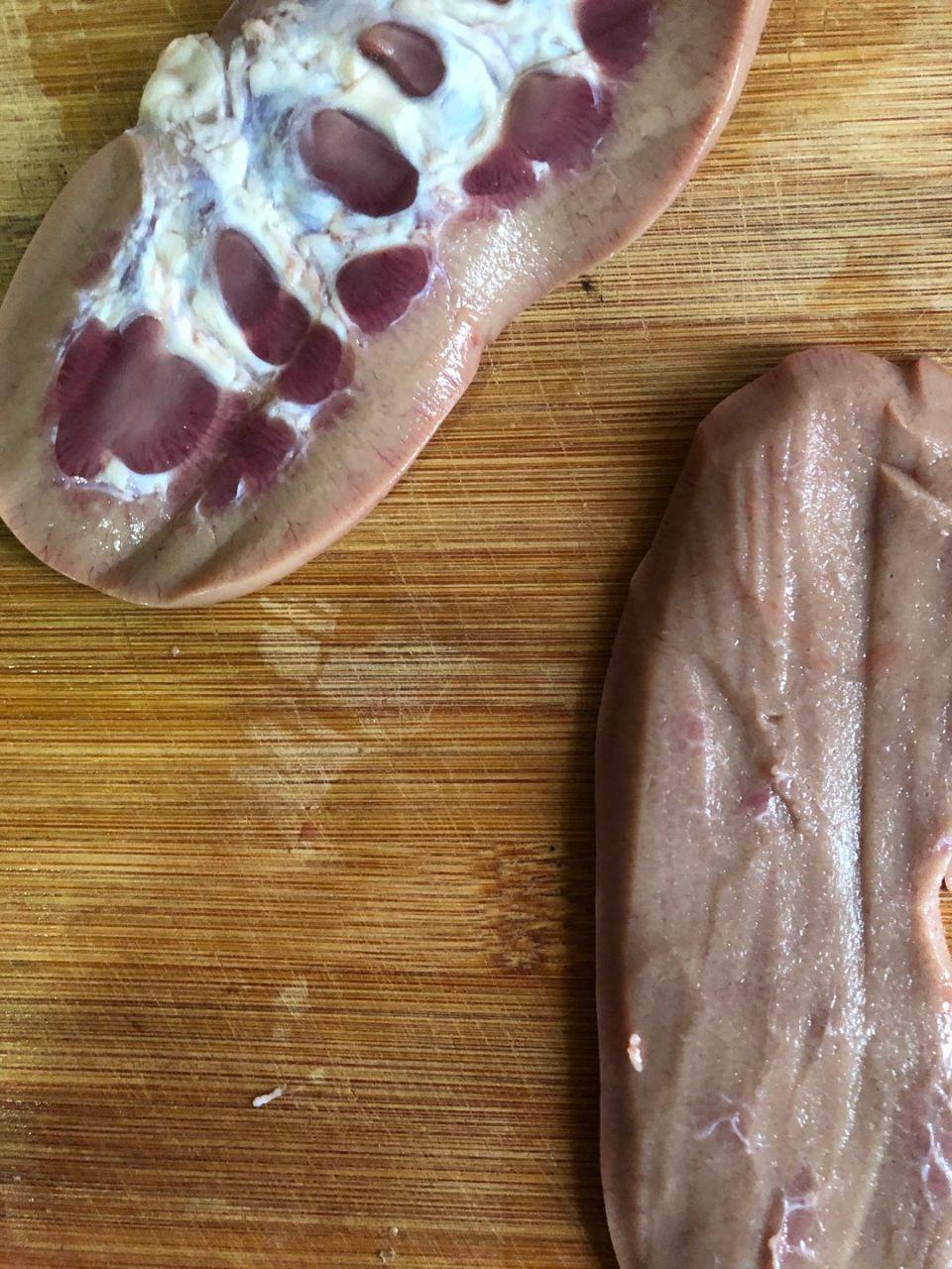 制作方法1、猪腰撕去油皮然后中间分开2半,把中间的腰骚去掉