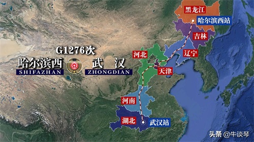 G1276次列车运行线路图:哈尔滨西开往湖北武汉,全程2446公里