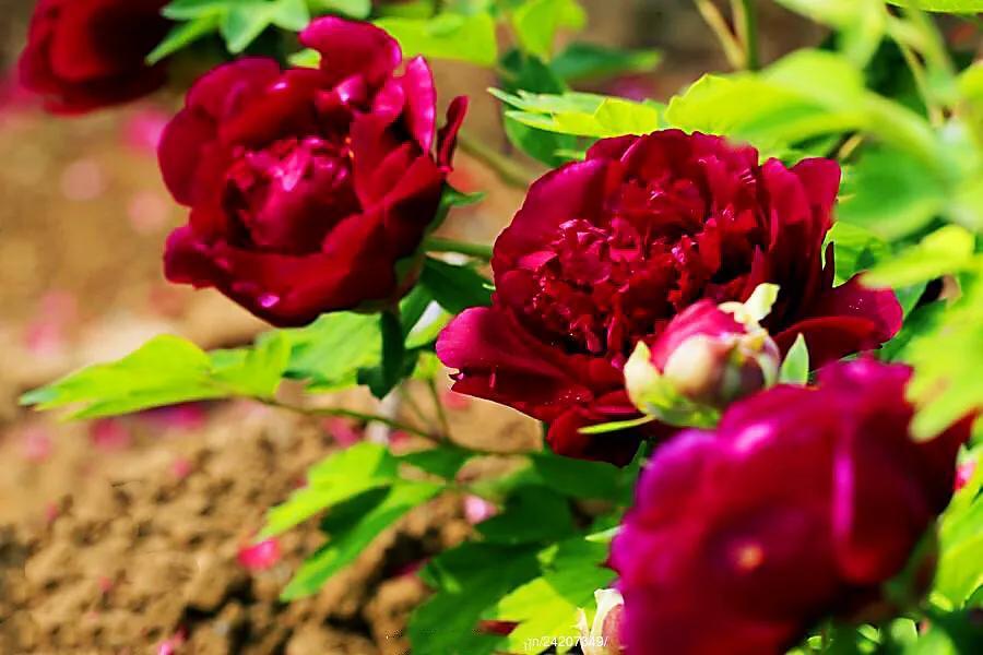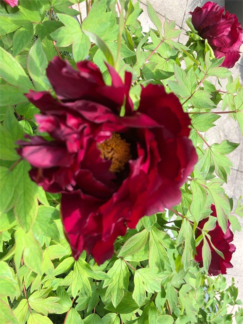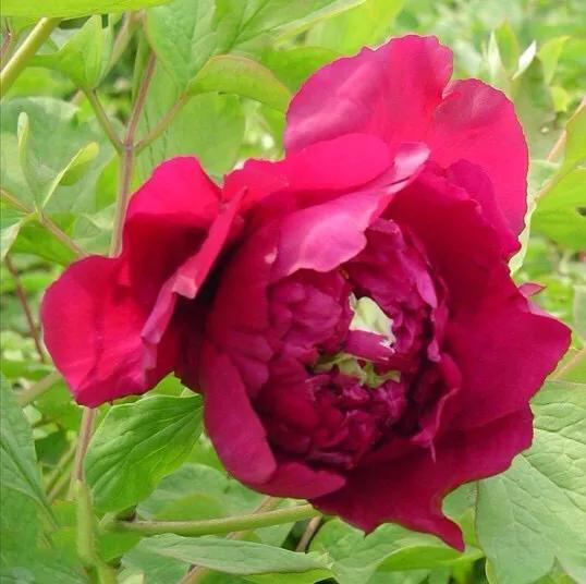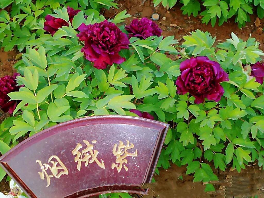 烟绒紫牡丹,传统名品,枝干较硬,用手摸一下就能感觉出来,(识别真假),甚至根系也有韧性,花型墨红色多层,略带有绿心,花型丰满呈皇冠型,外瓣突出,中瓣越离花心越宽大。