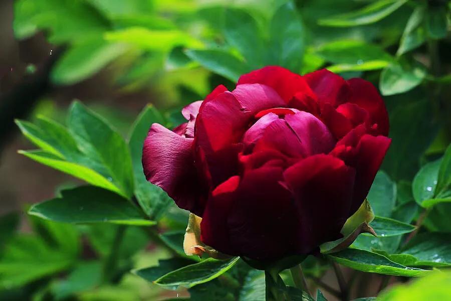 冠世墨玉牡丹 由"烟笼紫"和"黑花魁"杂交培育而成,是黑花牡丹中的魅首。